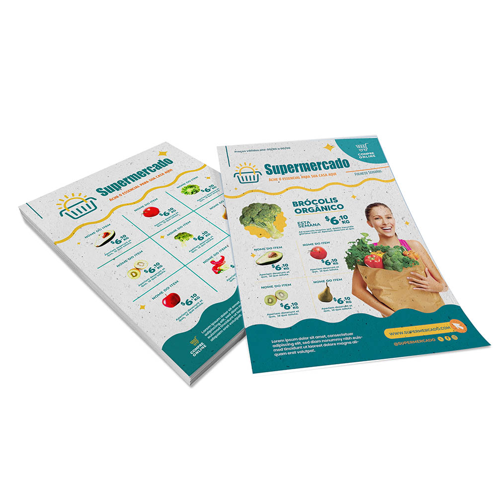 PANFLETOS, FLYERS E FOLHETOS RECICLATO 90G 300X210MM Colorido frente e verso - 300 un.